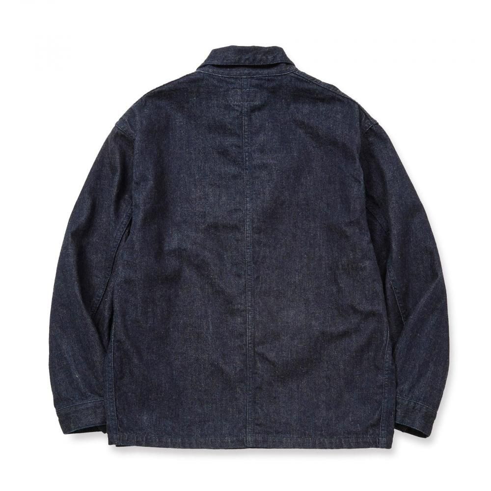 デニムカバーオール。単一米綿を使用した、ピュアインディゴの11.5ozヴィンテージリプロデニム生地を採用。毛焼きなしのサンフォライズ加工仕上げで、表面に生機の様な毛羽感があるのが特徴で、米綿特有のムラ感と、ドライタッチでガサついた粗野な風合い。ボックスシルエット、ワンウォッシュ仕上げ。内側にプリントが入る。